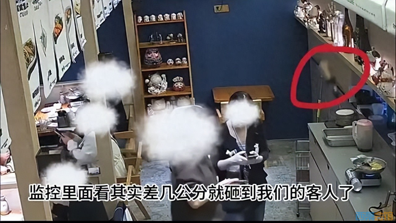 2月7日,该店负责人发了一段约4分钟的监控视频显示,女服务员在给顾客上菜后,走到出餐口处等待出餐,并与后厨沟通上餐事宜。老太太走到出餐口,端走了两盘菜。随即,该饭桌上的一名女子向服务员方向抛掷不明物体,货架上的酒瓶应声掉落摔碎。