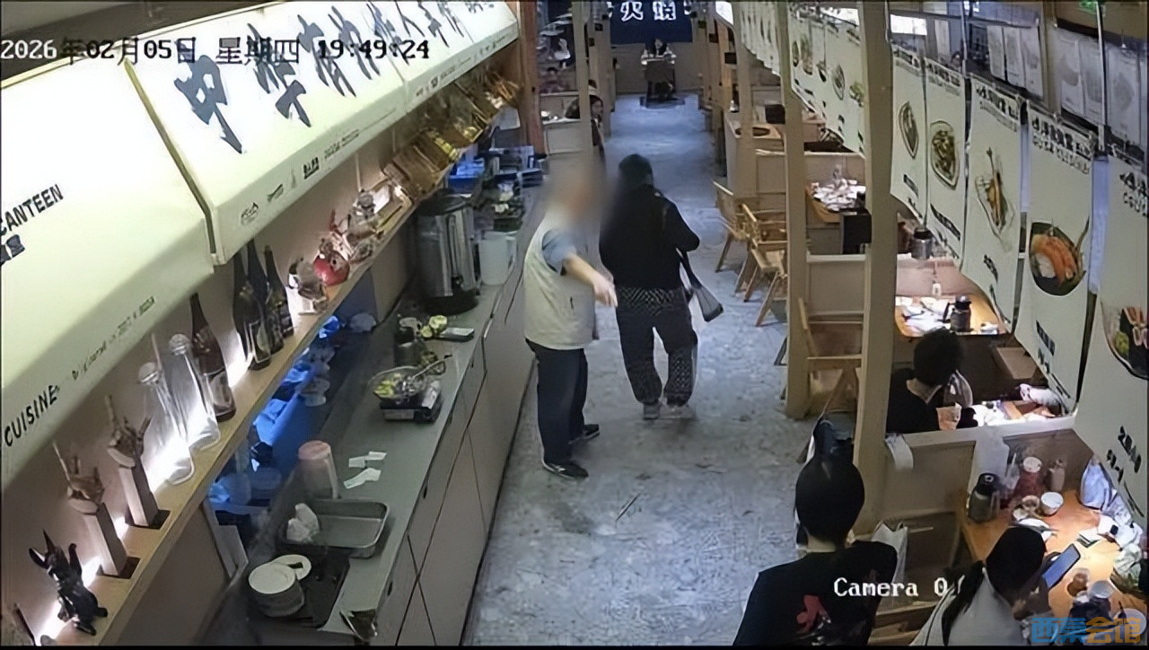 网友发布的监控视频显示,2026年2月5日晚7时47分,在一饭店的出餐口处,一名女性服务员在等待出餐时,有人向该服务员方向抛掷不明物品,砸中饭店货架上的酒瓶,导致酒瓶掉落后摔碎。