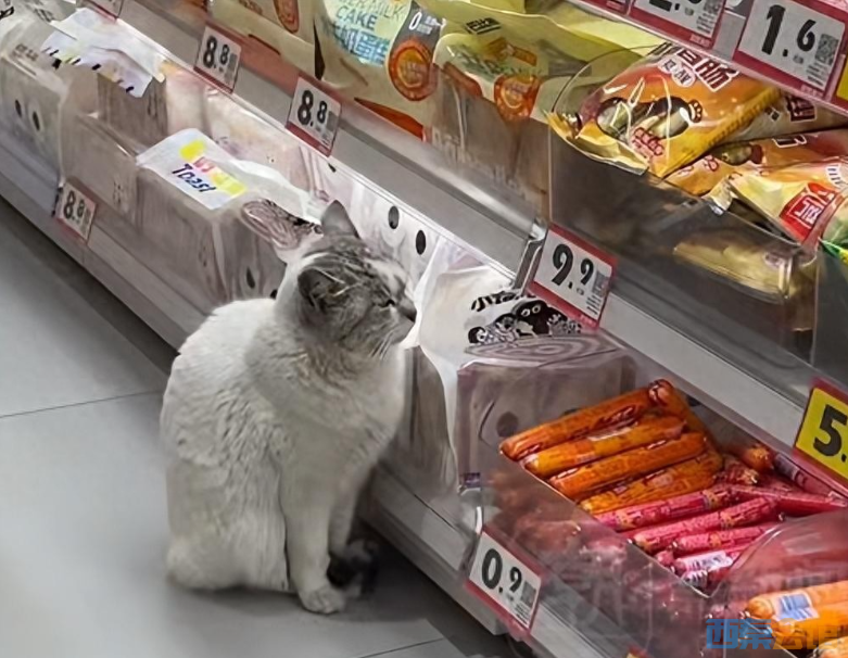 江苏一只猫每天在火腿肠货柜前蹲守,超市员工:它很有素质,只看不吃,也不抓人,...