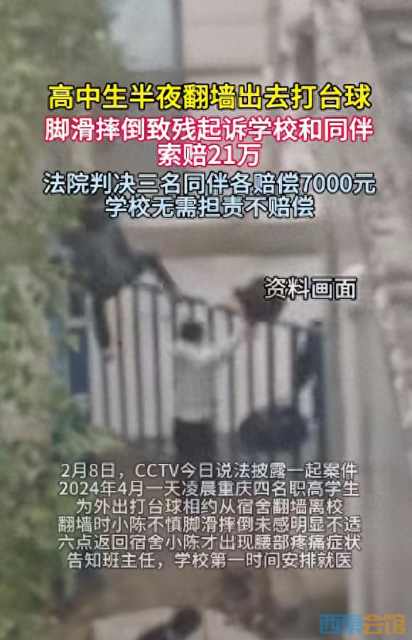 重庆一高中生半夜翻墙出校打台球,不慎摔倒致残,状告学校和同伴索赔21万!法院:...