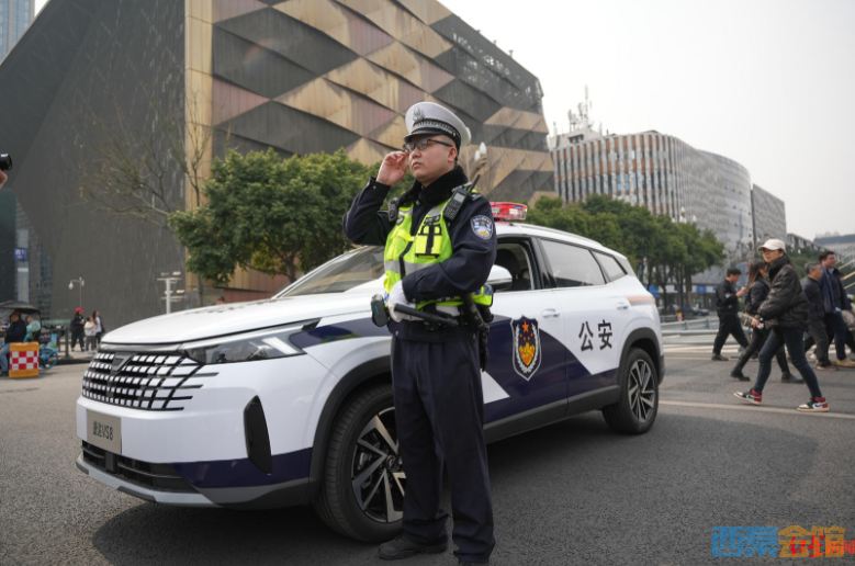 交警佩戴智能眼镜执勤,身边是“成都造”警车