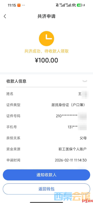 随后,记者看到该共济申请已成功提交,待收款人领取。