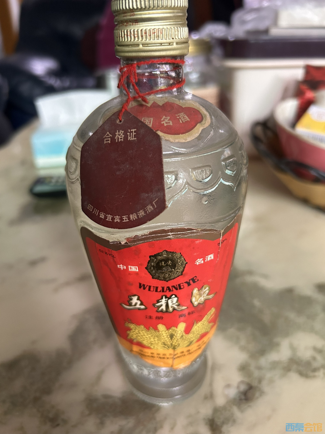 偶然翻到这瓶,都忘记啦。这种大肚瓶的五粮液还有多少? 二十多近三十年了,大家说喝了还是继续保存