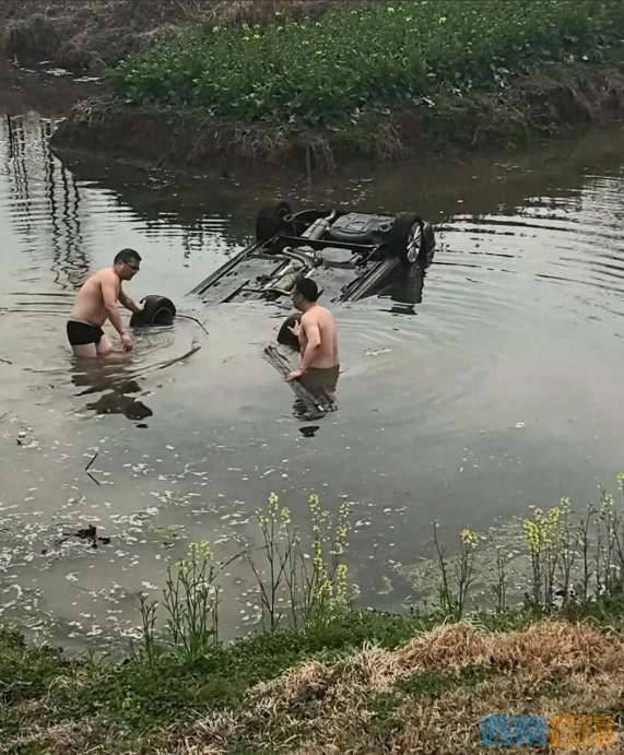 江苏一小车落水四轮朝天,十来名路人下水合力将车拉正救人,施救者:希望驾驶员平安