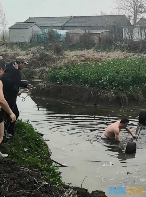 3月5日,江苏扬州,一辆小车冲入水沟四轮朝天,路过群众齐心救人,十来个人用绳子硬生生给小车翻了面,最终从车内拉出了驾驶员,引发关注。