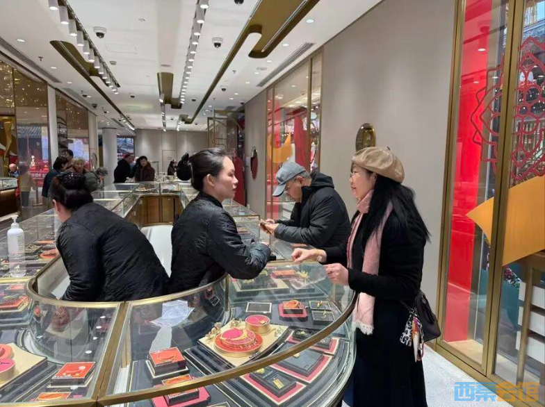 从南通来的张女士此番是来沪探望读大学的女儿,母女俩在豫园游玩时恰好路过老铺黄金门店,便决定顺道进店逛逛。张女士此前曾入手过品牌一款掐丝工艺挂坠,她告诉记者,自己其实不太关注价格变动,选择老铺黄金的核心原因,是偏爱其古典雅致的款式设计。“我平时会穿新中式服饰,戴上老铺的古法金饰后,感觉和新中式服装特别搭。”