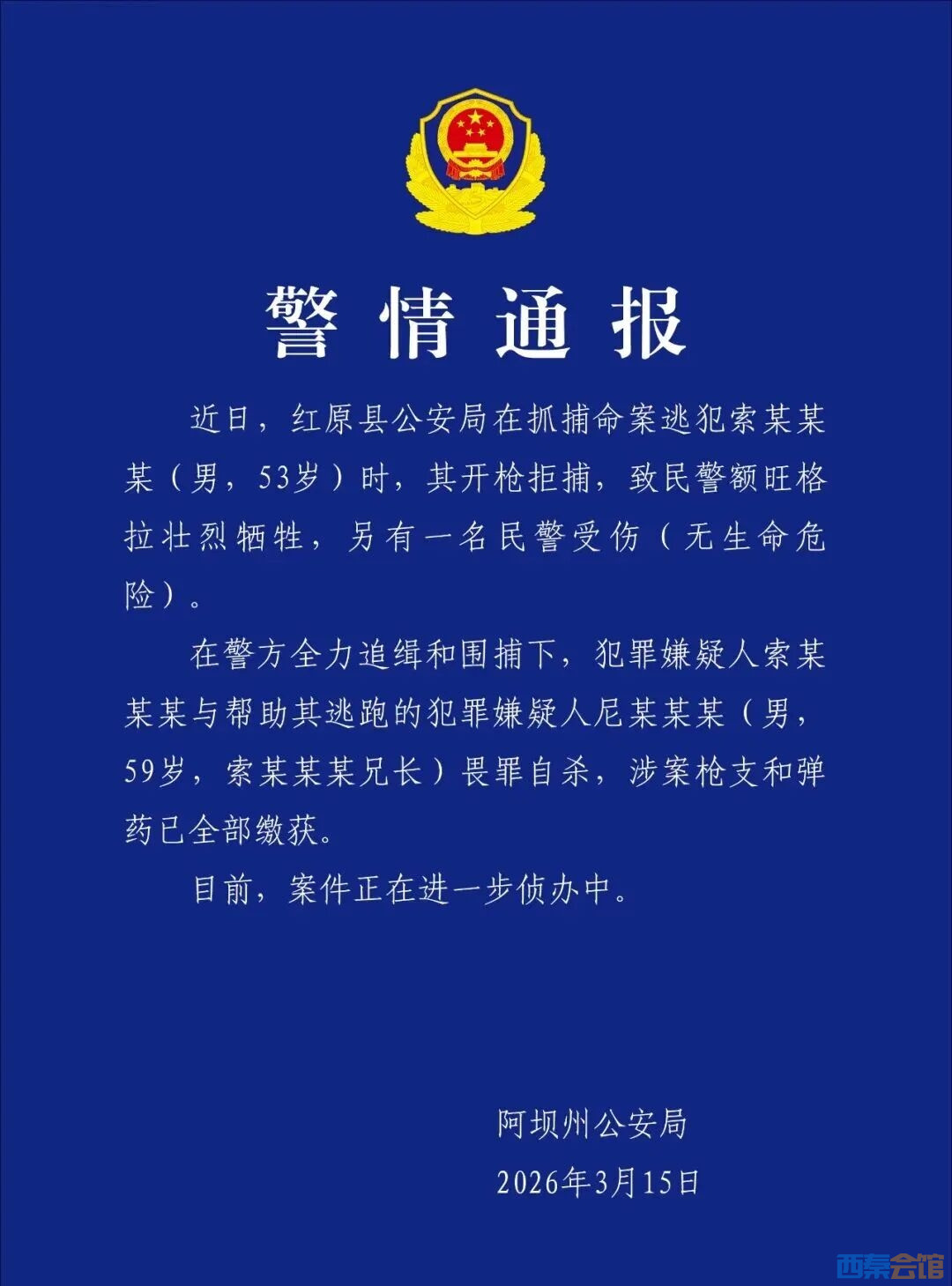 来源 阿坝州公安局 西部时报