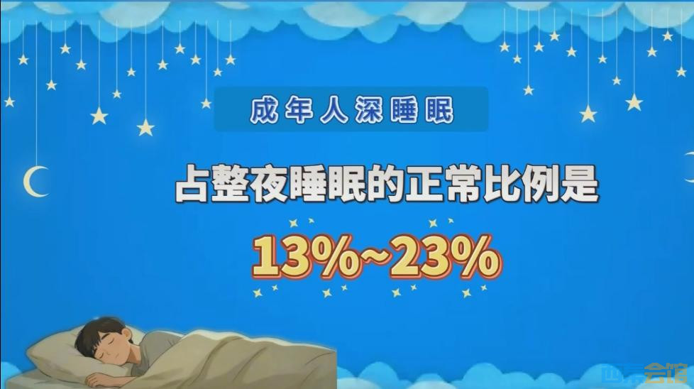 根据睡眠分期标准,成年人深睡眠占整夜睡眠的正常比例是13%~23%。也就是说,如果晚上睡眠时间是6~7个小时,整夜深睡眠能达到50分钟就是正常的。