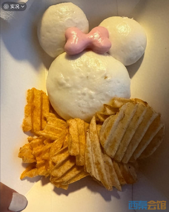 据悉,争议套餐为十周年限定“米妮蒸包”,实物为三个无馅白面馒头搭配数片袋装薯片。