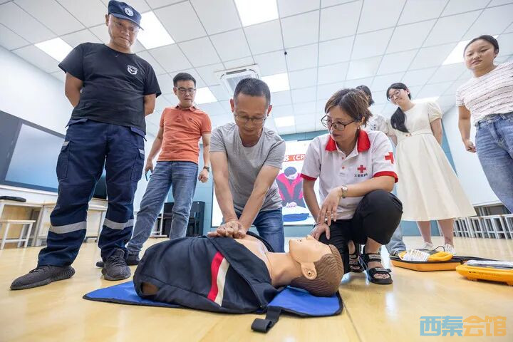 云南省急救中心的医师讲授心肺复苏方法技巧。新华社记者 胡超 摄